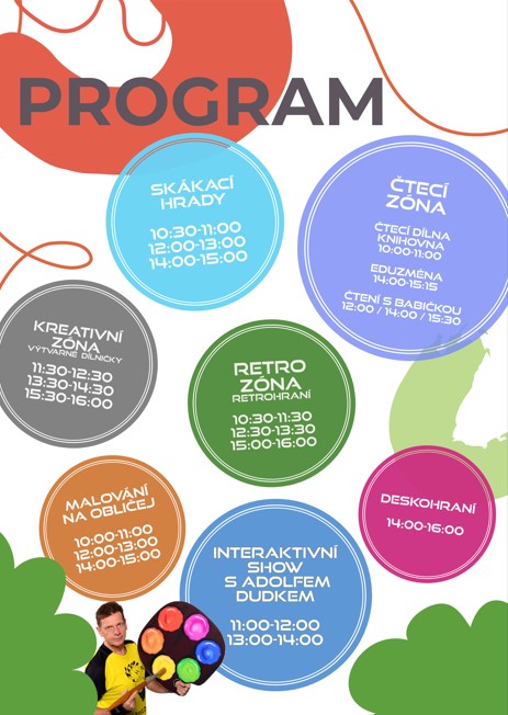 - ADOLF DUDEK – 11:00 a 13:00 rezervace na vystoupení na detske@knihovna-kh.cz /