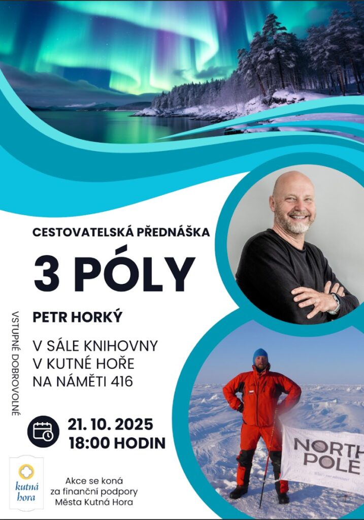 Známý cestovatel a dokumentarista Petr Horký se podělí o své zážitky z cest na Severní pól, Jižní pól a Pól chladu na Sibiři.