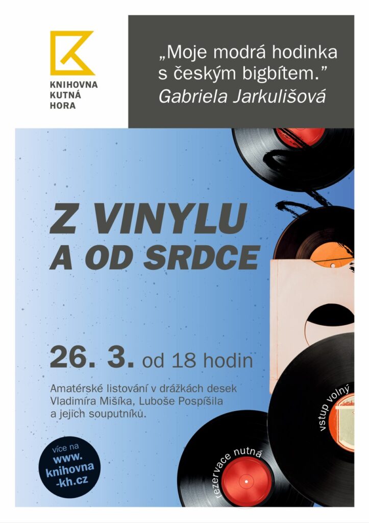 Knihovna Kutná Hora připravila v rámci kampaně Březen – měsíc čtenářů netradiční setkání, které propojuje literaturu s praskotem vinylových desek. V úterý 26.3.2026 se sál knihovny promění v útulný retro obývací pokoj, kde se budou přehrávat legendární alba českého bigbítu. Pořad s názvem „Z vinylu a od srdce“ se uskuteční ve čtvrtek 26.3.2026 od 18.00 v sále knihovny.
