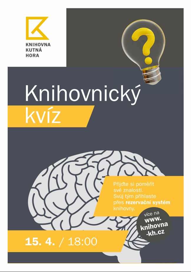 Máte rádi soutěže? Vyzkoušejte náš Knihovnický kvíz, kde si poměříte své znalosti. Svůj tým 3–6 lidí přihlásíte přes rezervační systém ZDE.